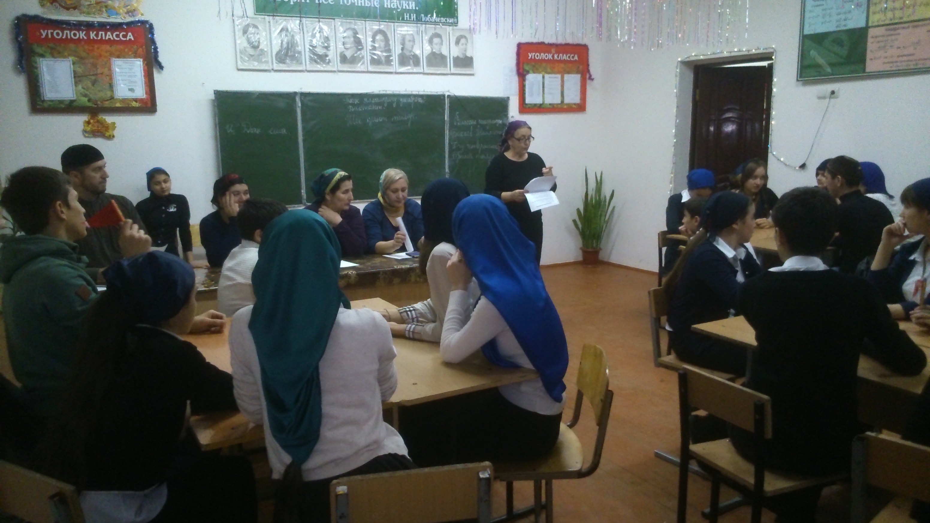 22.12.201422 декабря в школе прошел школьный этап игры проекта "Увлекательный мир Ислама". В игре участвовали ученики 8-10 классов, 4 команды по 6 человек: команда "Мусульмане" капитан Николаева Наталья, "Ислам" - Сардалов Сайхан, "Таухид" - Шамаев Алхаст, "Последователи Ислама" - Матаев Зелимхан. Организаторы игры ЗДВР Гавдуханова Р.В., педагог-организатор Дацуев Р. и лидеры команды "Эффект Грозный". Призовые места заняли: 1 место Последователи Ислама", 2-"Мусульмане", 3-"Ислам", 4-"Таухид"