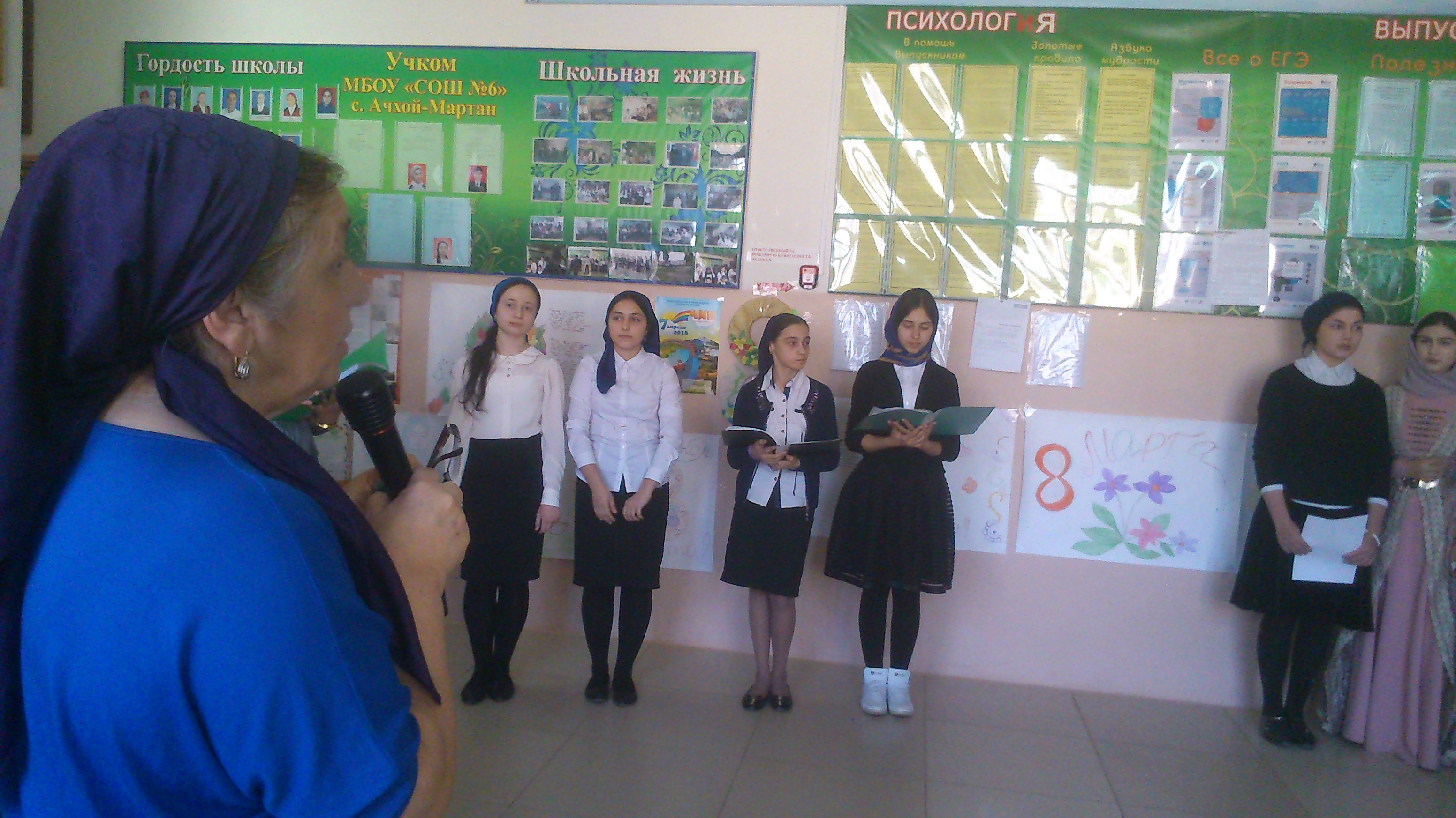 05.03.2016В преддверии праздника Международного женского дня 8 марта в школе провели торжественное мероприятие. В ходе вступления заместитель директора по воспитательной работе Гавдуханова Р.В. поздравили женскую половину с этим весенним праздником, учащиеся 5, 9 "А" и "Б" прочитали стихотворения и спели песни мамам, бабушкам, педагогам... Среди девочек провели конкурс "Будущая домохозяйка", в котором они показали свое мастерство в рукоделии, гостеприимстве, психологии. В конце программы состоялся ловзар.