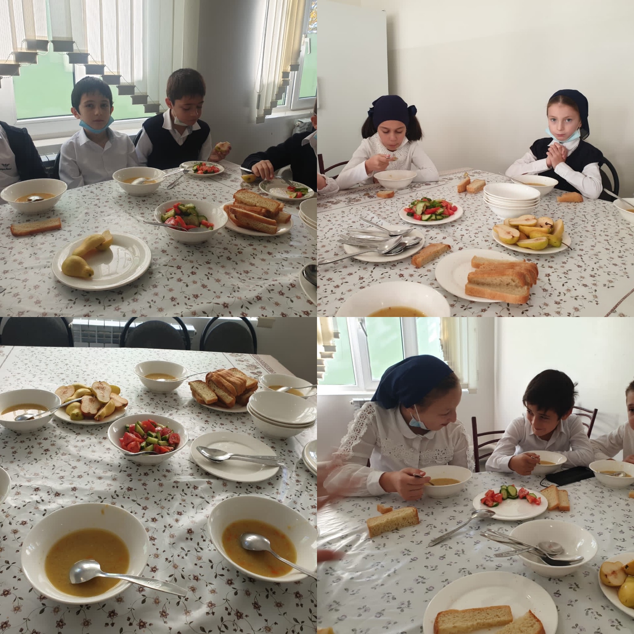 09.11.2020Сегодня меню горячего питания для начальных классов состоит из: 1. Суп чечевичный -200 гр. 2. Масло сливочное – 10 г. 3. Салат из помидоров и огурцов – 60 гр. 4. Хлеб – 40 гр. 5. Сыр – 10 гр. 6. Чай с сахаром – 200 гр. Груши – 75 гр.