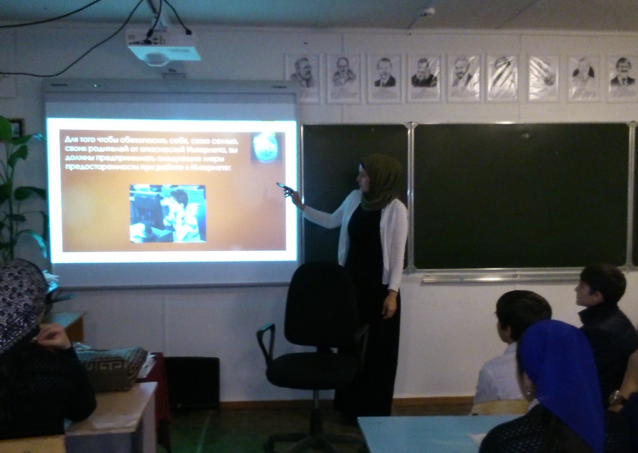 27.10.2016Современные дети являются самыми настоящими проводниками интернет- технологий. Именно поэтому мы должны очень много внимания уделять безопасному интернету. Сегодня в нашей школе учитель информатики и ИКТ Адаева Х.Л. провела уроки интернет-безопасности, на которых ребята узнали, в частности, как безопасно общаться в социальных сетях, пользоваться полезными интернет-ресурсами для учебы, делать покупки в сети, не попадаясь на уловки мошенников. Помимо получения доступа к запрещённым материалам, которые могут оказать негативное влияние, на ребёнка, существует и такое понятие, как интернет-зависимость. Она появляется тогда, когда люди начинают предпочитать Интернет реальности, проводя за компьютером большую часть жизни. Ребята узнали сколько времени можно проводить за компьютером, чтобы избежать интернет-зависимость.