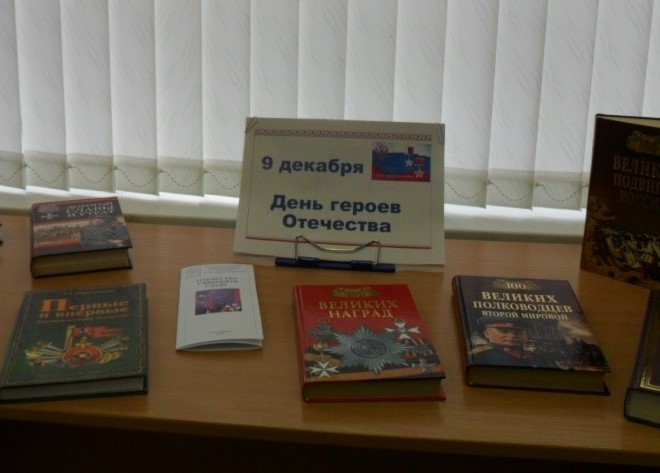 09.12.2016С 5 по 9 декабря ко Дню Героев Отечества в библиотеке МБОУ «СОШ №6 им.Х.А.Мамакаева с.Ачхой-Мартан» проведены мероприятия: с обучающимися 8-9 классов проведен урок мужества «Равнение на героев». В ходе мероприятия, присутствующие были ознакомлены с краткой историей праздника, историческими событиями, в ходе которых выходцы из Чеченской Республики проявили мужество и героизм в годы второй Мировой войны. Также вниманию читателей была представлена книжная выставка «За службу и храбрость», особое внимание на которой, было уделено книге «Золотые Звезды Чечено-Ингушетии».