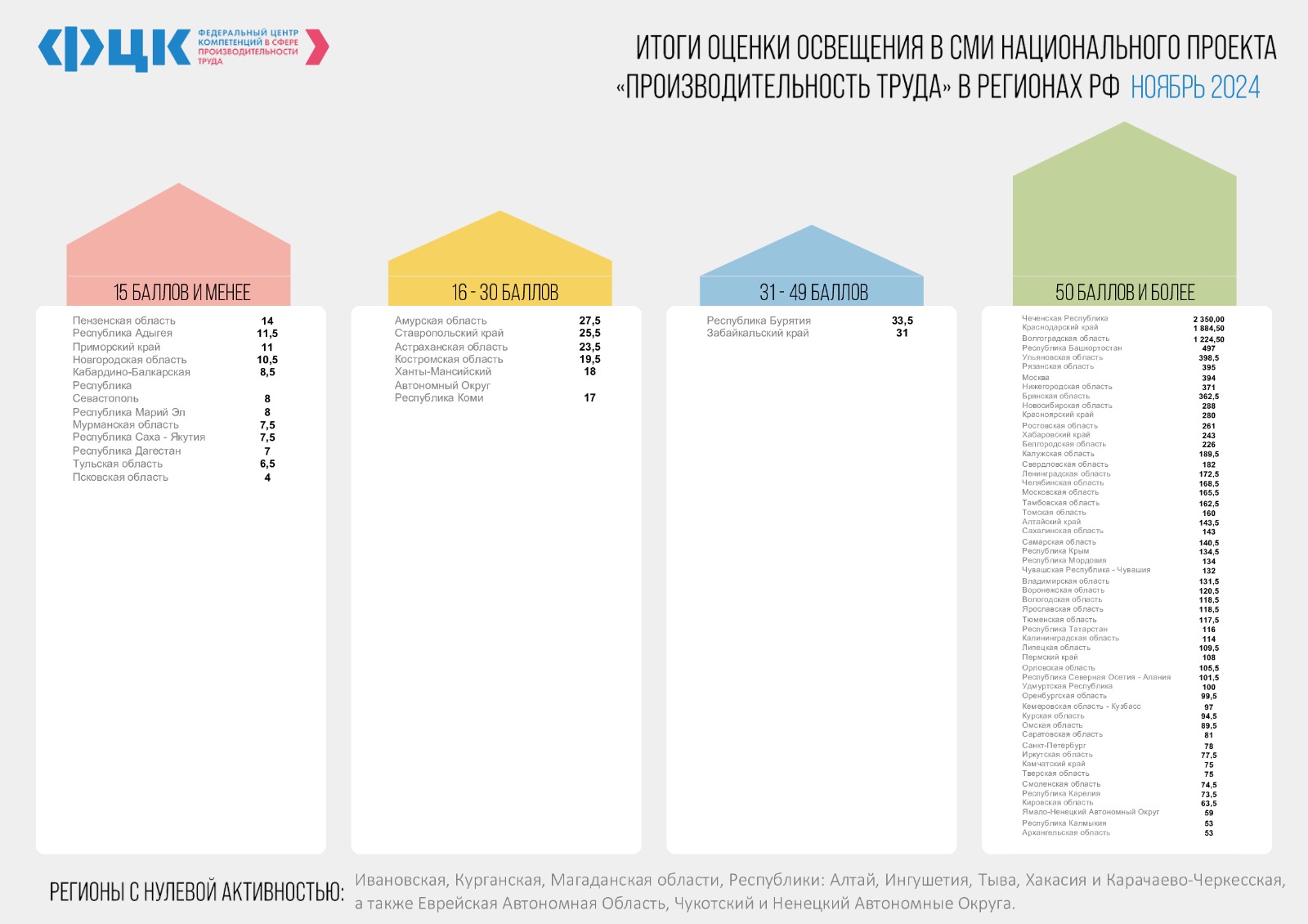По итогам подведенным ФЦК за ноябрь 2024 года, Чеченская Республика вошла в лидирующую группу и заняла первое место.