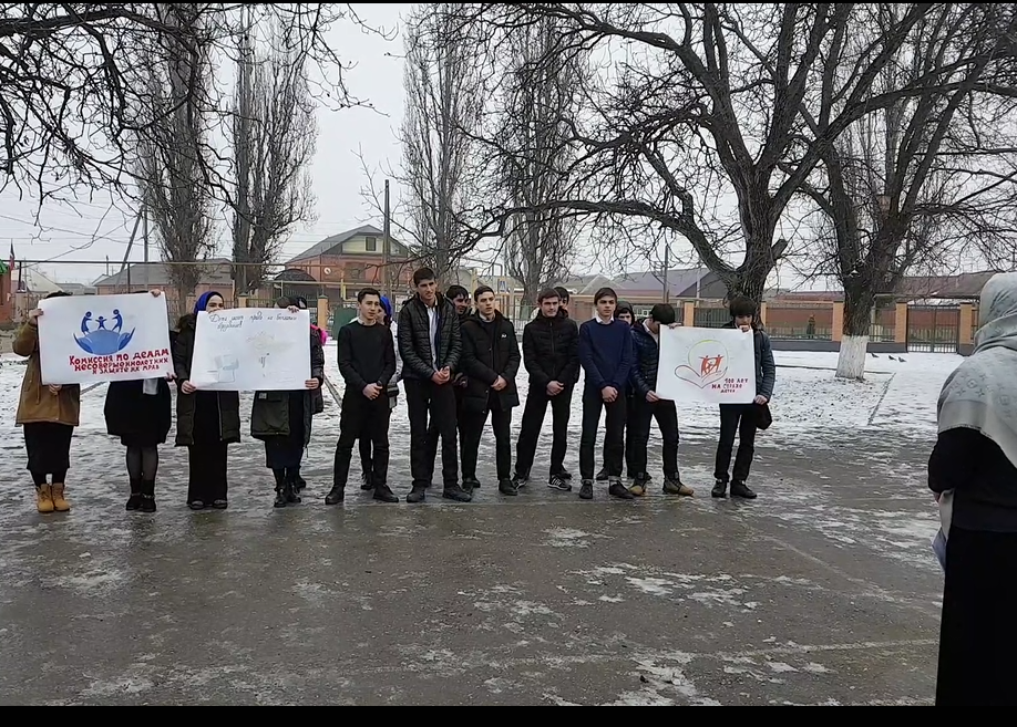 29.01.2018Сегодня учащиеся МБОУ "СОШ №6 им. Х.А. Мамакаева с. Ачхой-Мартан" приняли участие в флешмоб-акции, посвященной 100-летию создания комиссий по делам несовершеннолетних и защите их прав (КДНиЗП). Истории Комиссий по делам несовершеннолетних и защите их прав в РФ начинается с Декрета Совета Народных Комиссаров РСФСР от 14 января 1918 г. Создание комиссий, учрежденных Декретом Совета Народных Комиссаров, ознаменовало принципиально новое направление в истории правосудия по делам несовершеннолетних.