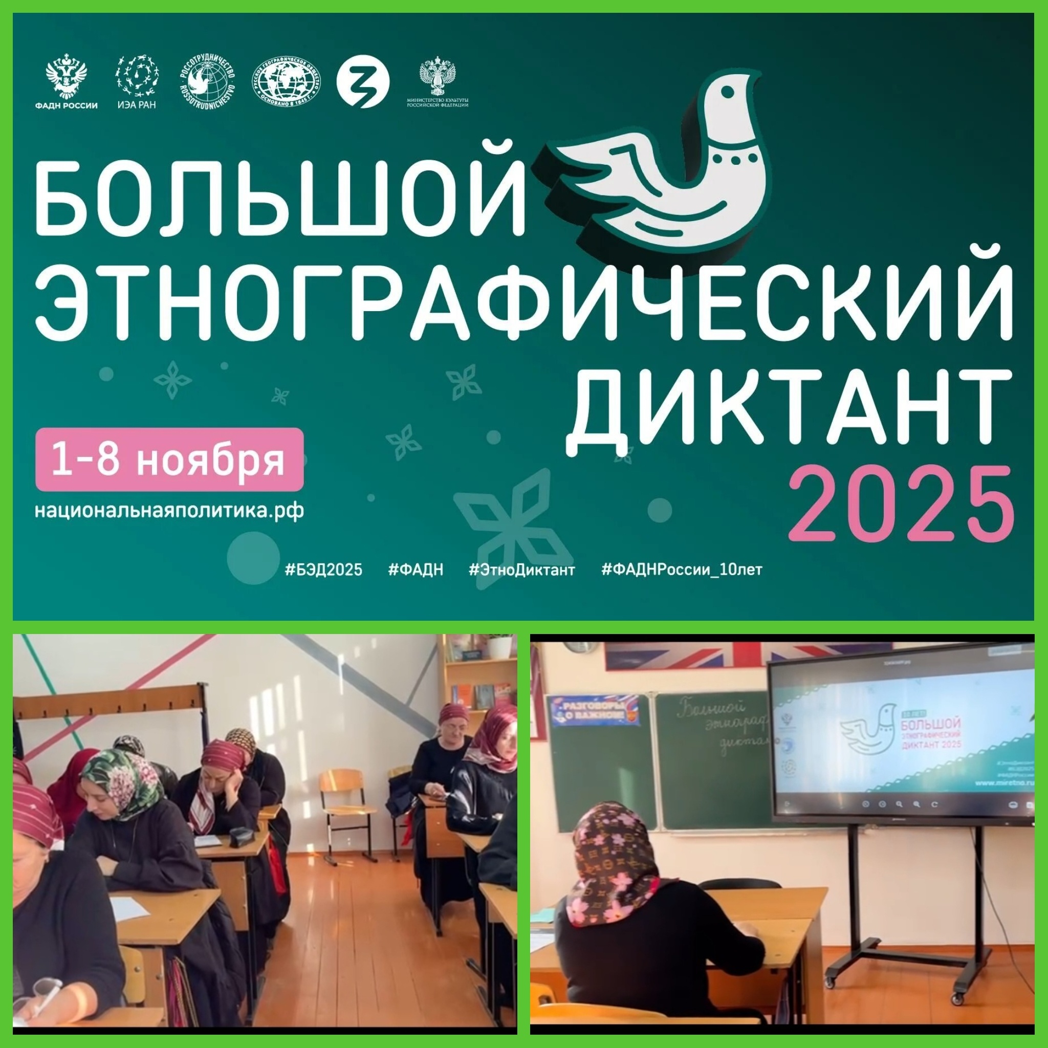 08.11.2025С 1 по 8 ноября 2025 г. во всех субъектах Российской Федерации и ряде иностранных государств прошла X Юбилейная Всероссийская просветительская акция «Большой этнографический диктант».«Большой этнографический диктант» — это не экзамен и не формальная проверка знаний. Это возможность открыть для себя многообразие нашей страны, осознать масштаб её исторического пути и понять, что именно уважение к традициям и культура каждого народа составляет прочный фундамент нашего гражданского единства.